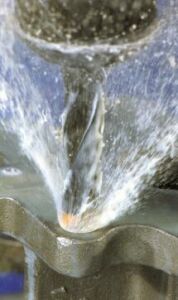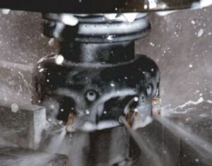 teorie chlazení pro obráběcí strojeBěhem třískového obrábění se teplota v místě řezu pohybuje v rozmezí od 650 do 800 ºC. Při použití klasického chlazení se část chladicí kapaliny přemění v páru, která následně brání přístupu nové kapaliny, a tak není zaručen potřebný chladicí a mazací účinek. Jednou z variant eliminace těchto nežádoucích vlivů je správné použití vysokotlakého chlazení v kombinaci s volbou vhodného řezného nástroje.