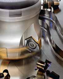 VYBRANÉ FRÉZOVACÍ ÚLOHY, VHODNÉ NÁSTROJE – PRVNÍ ČÁST Čelní frézování a frézování do rohu jsou nejběžnější frézovací operace pro obrábění rovinných ploch (obr. 3); používají se pro ně frézy s úhlem nastavení ?? v rozsahu 10° – 90°. Nejmenší hodnoty se využijí při obrábění velmi vysokými posuvy, až 4 mm/zub a malou hloubkou řezu a p v rozmezí 1,2 – 2,0 mm dle velikosti destičky. Nehrozí přetížení destičky, protože je malá tloušťka třísky a přesto lze dosáhnout velkých úběrů – až 1400 cm3/min. (obr. 4). Rozhodující složka řezné síly je axiálního směru, a proto tento způsob práce není vhodný pro obrábění málo tuhých obrobků či obrobků, jejichž upnutí není dostatečně tuhé v axiálním směru. Jako prvá volba se při čelním frézování užívá úhel nastavení 45°- 65°, kdy je směr řezné síly optimální a je snížen sklon k vibracím při velkém vyložení nástroje. Pro frézování do rohu, kdy na rovinnou plochu navazuje plocha kolmá, je nutno užít úhel nastavení 90°; tato geometrie je rovněž vhodná pro opracování tenkostěnných obrobků či obrobků slabě upnutých. Při velkých požadavcích na tuhost nástroje či při převaze bočních ploch nad čelními lze užít nástroj s tangenciálně upnutými břitovými destičkami (frézy Iscar skupiny HeliTang). Kruhové břitové destičky se vyznačují plynulým záběrem a největší pevností břitů; směr řezné síly závisí na hloubce řezu. Tyto destičky jsou obzvlášť vhodné pro obrábění žáruvzdorných slitin. Při výkonném čelním frézování neželezných materiálů, litiny a tvrzené oceli frézami velkého průměru, kdy se požaduje vysoká kvalita povrchu, je z důvodu vysokého posuvu na otáčku, daného větším počtem destiček na nástroji, nezbytné použití hladicích břitových destiček. S výhodou se užívají frézy s axiálním stavěním řezných destiček, které umožňují užití hladicích destiček ve více než jednom lůžku. Příkladem mohou být frézy Sandvik Coromant řady CoroMill Century nebo Auto AF se stavěním destiček v rozsahu 1 mm a přesností nastavení v několika µm. Při použití PVD povlakovaných destiček s pozitivní geometrií a ostrými břity lze tak docílit zrcadlového lesku obrobené plochy.