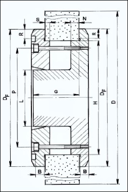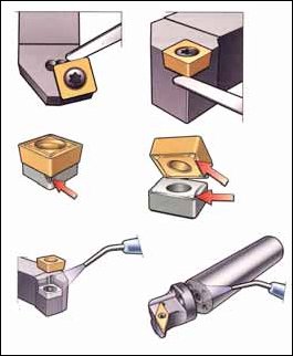 Specifika upínání brousicích kotoučů jsou dána jejich velkými otáčkami a z toho plynoucím vysokým rizikem škod v případě jejich destrukce. Upínání pomocí přírub (obr. 3), které je pro tyto nástroje běžné, musí proto zaručit jak požadovanou polohu, stabilitu upnutí a přenos krouticího momentu, tak to, aby do kotouče upnutím přenášené síly nezvyšovaly nadměrně jeho namáhání. Stykové plochy po upnutí musí být kolmé k ose rotace, měrný tlak mezi přírubou a kotoučem nesmí překročit maximální tlak, povolený výrobcem kotouče. Tlak musí být rovnoměrně rozdělen po upínací ploše a nesmí dojít ke vzniku jakéhokoli bodového zatížení. Proto je na vnitřním průměru upínací plochy umístěno vybrání, zamezující vzniku tlaku blízko vnitřního průměru kotouče, které musí být zachováno i po repasi příruby; mezi povrch kotouče a upínací plochu příruby se ze stejného důvodu vkládá papírová nebo plastová vložka o tloušťce min 0,5 mm (pokud jí není kotouč již vybaven od výrobce). Upínací šířka příruby musí překrývat minimálně 1/6 radiální šířky kotouče a příruba musí nést označení vnitřního průměru kotouče, jeho maximálního průměru a maximální a minimální šířky.