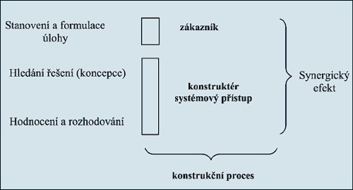 Všeobecně se dá říci, že tato myšlenka, kterou konstruktér nosí v hlavě, je omezována výše uvedenými předpoklady. Často se tedy stane, že z původní myšlenky po přefiltrování těmito předpoklady nezbude zhola nic. Konstruování je tedy proces, kdy za využití systémového přístupu je nalezeno technicko-ekonomicky optimální řešení na technickém objektu (např. CNC obráběcím stroji) za účelem uspokojení potřeby vlastní nebo zákaznické. Současně přitom je přihlédnuto k řízení procesu (rizika, vlastního konstrukčního procesu, jakosti, dědičnosti a inovace) a vlivům vnitřním i vnějším na tento proces, jakož i norem, CA technologií, požadavků zákazníka, subdodávek, stavu vývoje techniky, času dodávek či lidského činitele. Konstrukce má být založena na znalostech a schopnostech umět propojit všechny informace uvnitř podniku do koordinované akce tak, aby byla vytvořena přidaná hodnota pro zákazníka, který bude ochoten zaplatit. Tento proces je založen na třech postupných fázích (viz obr. 1).