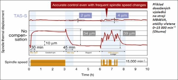 Softwarové kompenzace na základě poznání vlastností stroje – empirie a učení. Ve fázi prototypových (experimentálních na míru účelu navržených) zkoušek je stroj vystaven důkladnému měření a simulacím standardních i nestandardních provozních stavů – dlouhodobě se obrábí, krátkodobě i skokově se mění zatížení pohonů atd. Měření tedy probíhá kvůli nalezení závislosti deformace stroje a jeho provozního zatížení, popř. teplotě okolí. Výsledkem je informace, že například při XXminutovém frézování vřetenem při YY% zatížení hlavního pohonu a ZZ% zatížení pohonů pohybových se rám ve směru x, y a z zreformuje o XY mm. Následně se do řídicího systému zavádí potřebné korekce. V principu se jedná o nejlevnější způsob jak minimalizovat vliv deformací rámu na přesnost stroje, protože zákazníkovi dodaný stroj neobsahuje měřicí čidla, karty, obvody. Není pochyb o tom, že uplatnění je u strojů, které samy mají větší opakovatelnost výroby, nepředpokládají se ze statistického hlediska významné odchylky v chování jednotlivých vyrobených strojů a pro eliminaci řady nejistot v odhadu a predikci chování stroje naleznou uplatnění učící se neuronové sítě. Vícero principů kompenzace teplotních deformací využívá on-line měření teploty, jak v pohonech, tak na jejích konstrukčních částech, rámu, okolní teploty. Na základě změřených dat se do matic uložených v řídicím systému zadávají korekční hodnoty. Pokrokovější metody na základě aktuálně změřených dat dokáží potřebné kompenzace dopočítat. Řízené teplotní deformace lze využít ke kompenzaci deformace částí obráběcího stroje vlivem gravitace. Uplatnění nachází například u horizontek. Při velkých vyloženích vřeteníků s pinolou dochází k jeho nezanedbatelné deformaci. Kompenzace se provádí tažnými – proměnlivě hydraulicky předepínanými tyčemi, jež jsou umístěny ve vřeteníku v místech tahových napětí. Alternativně lze kompenzovat průhyb topnými tělesy umístěnými v místech tlakových napětí. Řízené teplotní kompenzace přináší uspokojivé výsledky, problémy může přinášet pomalejší šíření vzduchu – rychlost deformace a její setrvačnost vůči pracovní rychlosti pohybových os.