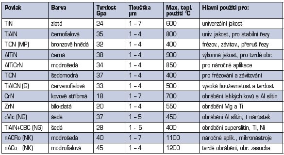 Pro srovnání: tvrdost oceli kalené na 63 HRc činí cca 8 Gpa, tvrdost nepovlakovaného WC – 18 Gpa, tvrdost