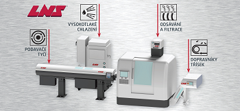 LNS – podavače tyčí, dopravníky třísek, odsávání a filtrace vzduchu, vysokotlaké chlazení