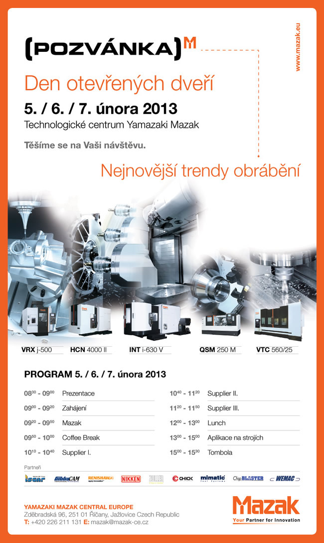 Potvrďte prosím Vaši účast e-mailem mmedunova@mazak-ce.cz nebo telefonem +420 226 211 134.