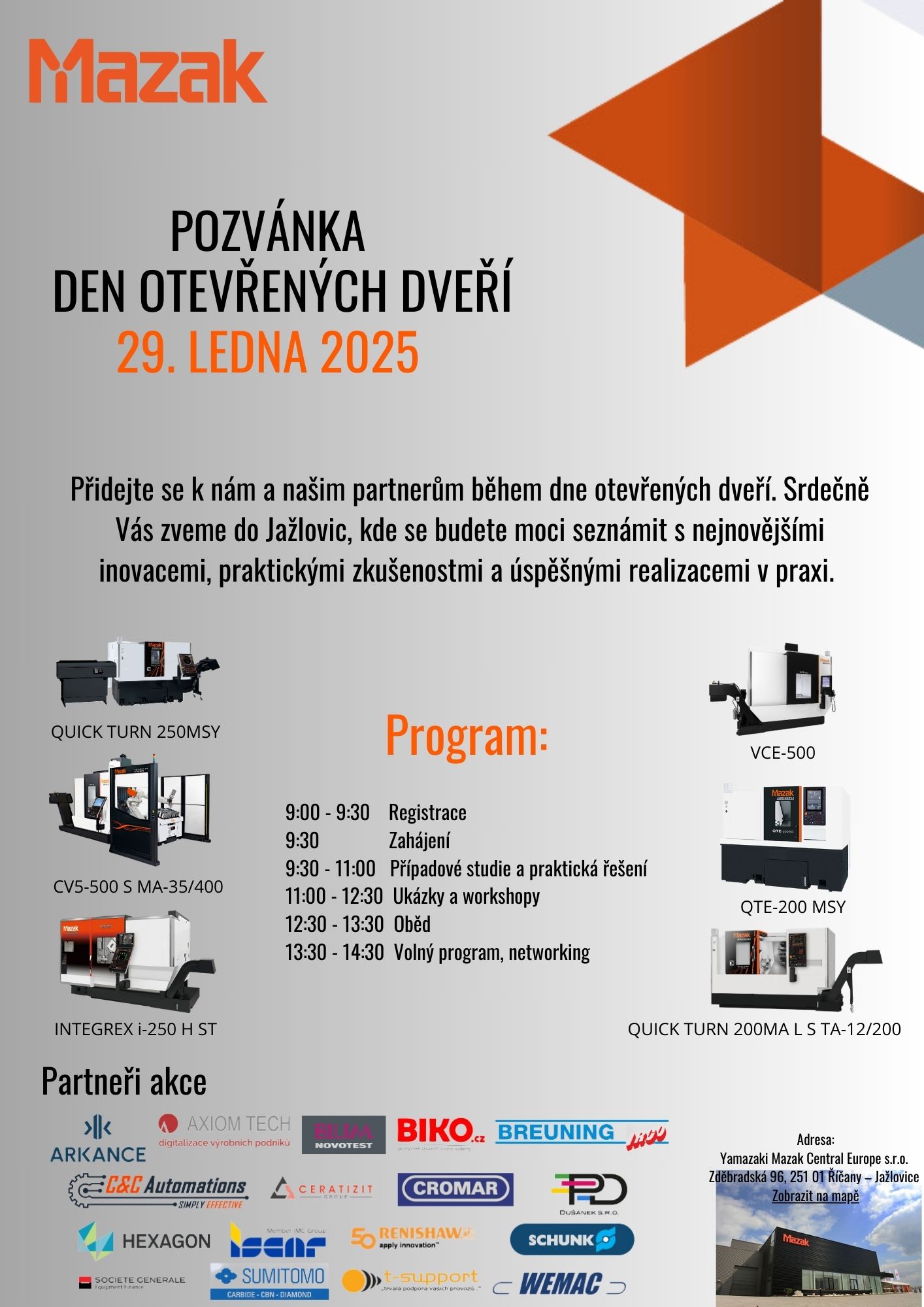 Adresa konání: Yamazaki Mazak Central Europe s.r.o. Zděbradská 96 251 01 Říčany – Jažlovice