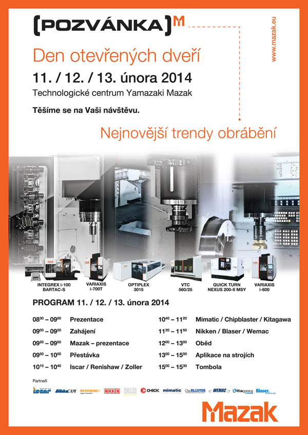 Den otevřených dveří, Yamazaki Mazak a GibbsCAM a ChipBLASTER 201411.-13. února, technologické centrum Yamazaki Mazak bude prostor i na: na setkání se těší i tým technology-support s.r.o.