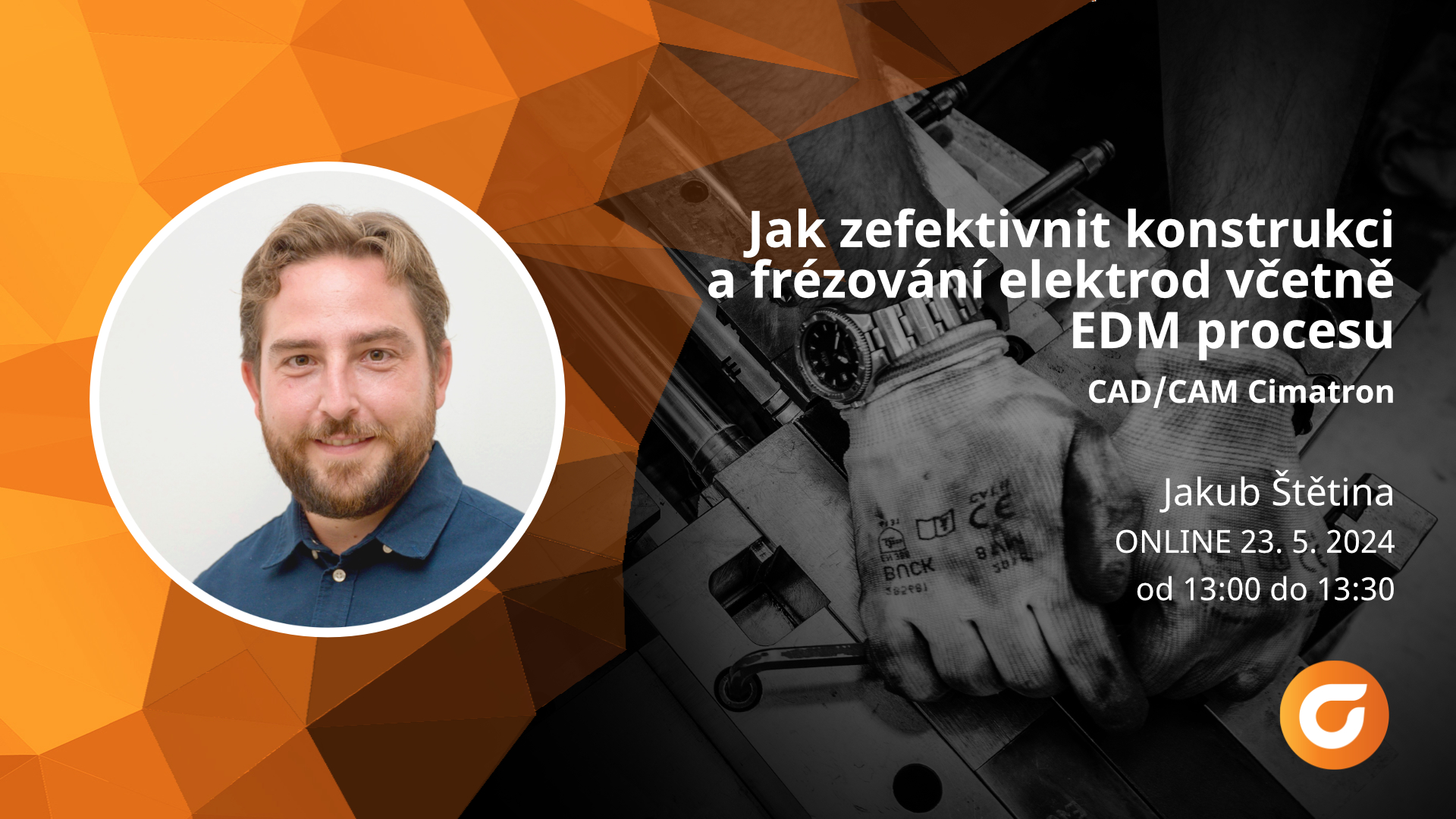 jak zefektivnit konstrukci a frézování elektrod včetně EDM procesu?online webinář 23. 5. 2024, 13:00-13:30, přednášející: Jakub Štětina Webinář je určený pro všechny, kdo konstruují a případně i obrábí elektrody a následně s nimi hloubí. Ukáže, jak lze v jednom systému provést všechny úkony, které s tímto procesem souvisí, a tedy ho výrazně urychlí. Díky jednotnému softwaru lze řadu úkonů přednastavit a automatizovat, včetně načítání pálicích parametrů pro EDM hloubicí stroj.