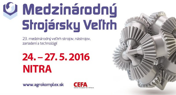 Medzinárodný strojársky veltrh v Nitre24. - 27. 5. 2016 v Nitre, hala M2, stánek č.7 Společnost Profika SK s.r.o. Vás srdečně zve na Medzinárodný strojársky veltrh, který se uskuteční v termínu od 24. do 27. 5. 2016 v Nitre. V rámci veletrhu budeme na stánku firmy Profika SK s.r.o. v hale M2 na stánku č.7 pro Vás k dispozici i my a rádi zodpovíme Vaše dotazy k tomu co umíme: