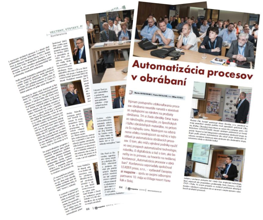 Dne 10. května 2018 se uskutečnila konference Automatizace procesů v obrábění ve Village Resort Hanuliak, v Belej, na Slovensku. Konferenci uspořádala společnost LEADER press, s.r.o., - vydavatel časopisu ai magazine.