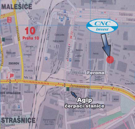 stanice AGIP, kde odbočíte vlevo na ulici Sazečská.