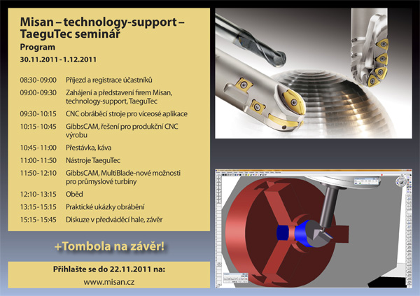 odborný seminář pořádaný firmami Misan, technology-support a TaeguTec ve dnech 30.11. a 1.12. 2011 v předváděcím středisku Misan s.r.o. v Lysé nad Labem