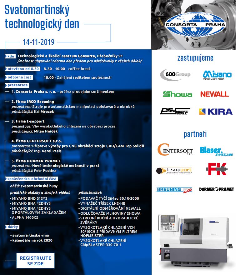 svatomartinský technologický den, Consorta Praha s.r.o.14. 11. 2019, technologické centrum Consorta – Hřebečníky Dne 14. 11. 2019 se koná v Technologickém centru společnosti Consorta Praha s.r.o. tradiční Svatomartinský technologický den.